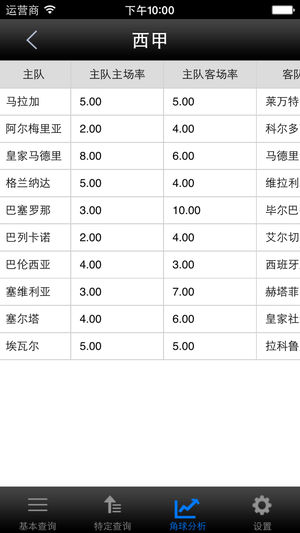 有免费的联赛供大家使用:基本查询里面的英超、荷甲、葡超 角球App是一款专门对足球角球数据提供服务功能的专业App。 面向对象为角球爱好者,仅提供专业性的角球数据及分析服务,但不对足球比赛的角球大或者小提供倾向性建议。 我们是中文第一家提供角球数据服务功能的App. 角球App主要包括基本查询、特定查询、角球分析三个模块。 基本查询:查询球队最近比赛主、客场的所有角球数据。 特定查询:查询对阵双方过往比赛的角球数据。 角球分析:对阵双方球队的最近比赛角球走势分析。 对以下联赛的角球数据提供数据支持: 欧洲: 英超、西甲、德甲、德乙,意甲、法甲、荷甲、葡超、瑞典超,土超,挪超,…