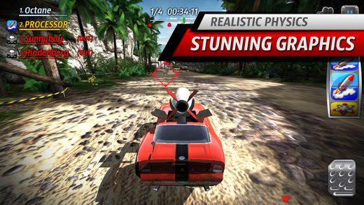 If you like this game, please check out our new title Uber Racer 3D Monster Truck Nightmare! Choose your racing style: Blow your enemies off the track or overtake them in a fair race - we mixed both styles together to form an insanely brilliant racing mix. From the developers of Uber Racer and Parcel Panic Jump into the seat of a race car and take the battle to the track - Motorblast takes the racing experience one giant step further! With the assistance of rockets, guns, mines, shields, rocket thrusters, an EMP device and lots of guts, you have everything it takes to dominate the field! - Something for everyone: Whether you like kart games, die-hard racing games or skill games - this is just for you! - Gripping game modes: The fun never stops as you collect coins, drive through minefields with maximum speed, race against the clock and much more! Be creative and use the items to your advantage! This game will never become boring! After you have completed all the levels, the infinity mode awaits, in which you can climb the ladder to the online world domination! - Next-generation graphics and physics: Tired of empty, lifeless worlds? We throw you into a mad jungle universe filled up to the brim with the most details you have ever seen on a mobile device. Although we have taken careful measures that this game looks best even on older devices, it is optimized for the retina displays and the fast new iPhone 5. - Insane damage model: Literally wreck your car! Each car can be reduced to the bare chassis by crashing into your enemies or taking hits from their weapons. Watch in amazement as your rocket tears your enemy into tiny shrapnel and you run over it. - Multiplayer (needs iOS6) What would this game be without a good fight beween you and three friends? Challenge then over wireless or bluetooth! Multiplayer requires iOS6 to play! - Enough! Give me the details: Campaign with more than 60 missions, 10 game modes and 7 spectacular tracks. The player can collect different weapons (rocket, EMP, machine gun, mines) and powerups (shield, boost) to punch through the pack of computer-controlled or multiplayer enemies. IMPORTANT! We value your feedback! If you dislike something or if you have any suggestions, please use the contact option in the game. Remember: although we read your reviews, we can not answer them! The best way to keep in touch is to use direct contract or facebook!