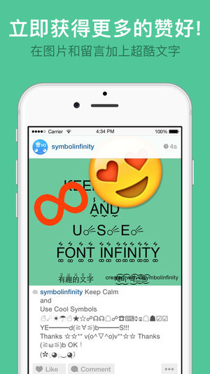 恭҉喜҉发҉财҉!҉新҉年҉快҉乐҉!҉ 适҉用҉于҉中҉文҉ 立即在键盘(iOS8以上)直接使用百多种可爱字体,三千多种有趣符号,全新表情符号,日本超萌颜文字和贴纸! 全新强大的功能: ►从您收到的讯息或互联网收集动画贴纸,GIF和贴纸,直接保存入键盘内重复使用;或与您的朋友分享您收集的贴纸。 ►试试我们的超萌艺人表情符号。 ►三千多种有趣符号,全新表情符号和日本超萌颜文字。 ►使用我们全新的可爱键盘主题或经典彩色键盘主题。 一百多种超酷的字体效果!让你容易地创建超特别的Facebook,Instagram,Twitter个人档案,留言和图片。 适用于任何地方,在任何语言上! 七十多…