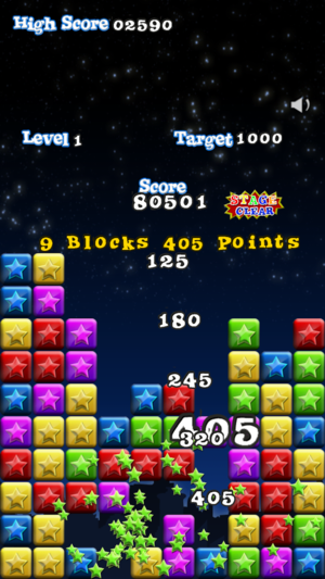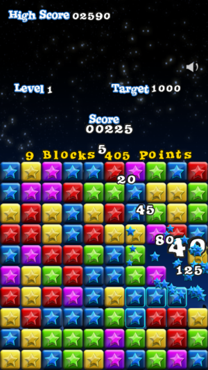 现在增强iPad / Retina / iPhone 5显示! 摘下一颗星,星星摘不停! 完美游戏! "这是我现在最喜欢的游戏! 策略性、上瘾性、挑战性,趣味十足,让众生为之倾心!重玩价值颇高嘛!我在不停提高哦! 这款游戏当之无愧应排在大家的最爱游戏列表中! 很棒的游戏!" 爱不释手 "我爱死这款有着精美视网膜图像的游戏啦!酷毙了!" ---=== 游戏方法 ===--- - 只需点击同色的2个或2个以上的星形块。 - 无时间限制,但每阶段设有进入下一阶段的目标得分。 得分小贴士: - 只需牢记以下两条规则: 1. 你摘下的星形块越多,得分越高 2. 努力清除所有星形…