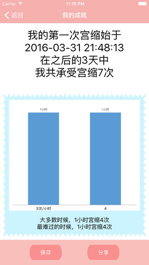 帮助准妈妈在分娩前记录宫缩频率和时长,以判断是否达到就医标准。操作极简! 遇到问题,可随时咨询产科医生,1对1服务,就像您的私人医生。 准妈妈在宝宝出生之前,会产生宫缩(也叫阵痛),宫缩程度会逐渐加剧。通过记录宫缩,可以判断什么时候去医院待产。在医院待产时,也需要记录宫缩,以协助产科医生判断什么时间进产房生产。 宝宝出生后,点击“宝宝出生”按钮,可为新妈妈生成一份宫缩记录的统计分析图表,记录下您艰辛的分娩过程,永久保存留念。 本APP将帮助准妈妈们度过宝宝出生这一艰辛的旅程! 祝各位准妈妈的孕产过程一切顺利!