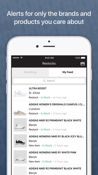 Helping you find and buy the streetwear products you love. Featured in GQ, Techcrunch, High Snobiety & more. Restocks helps you stay on top of streetwear and sneaker releases with restock alerts, mobile autofill for quick checkout and now a marketplace for users to buy and sell directly with one another. FEATURES • Autofill for Supreme, KITH, Palace and more. • Save custom alerts for brands, stores or products • Add to Cart & checkout without leaving the app • Customized feed of important events • Buy and sell in the new marketplace • Binding offers to help sell your items quickly • Upgrade to Restocks+ for access to our premium features. Our current Restocks+ features include Google Login to help reduce captcha at checkout, profile switcher to make copping multiple items a breeze, automatic scroll to bottom, and a countdown clock with seconds to help you time your refreshes. Restocks+ users also get first access to new features. Current Restocks+ subscription prices are: $4.99 USD for 30 days $19.99 USD for 180 days $30.00 USD for 365 days If you choose to purchase a subscription to Restocks+, payment will be charged to your iTunes account, and your account will be charged for renewal within 24-hours prior to the end of the current period. Auto-renewal may be turned off at any time by going to your settings in the iTunes Store after purchase. Prices are in U.S. dollars, may vary in countries other than the U.S. and are subject to change without notice. No cancellation of the current subscription is allowed during the active subscription period. If you don’t choose to purchase Restocks+, you can simply continue using Restocks for free. For more information please visit: Privacy: https://www.restocks.io/privacy Terms: https://www.restocks.io/terms