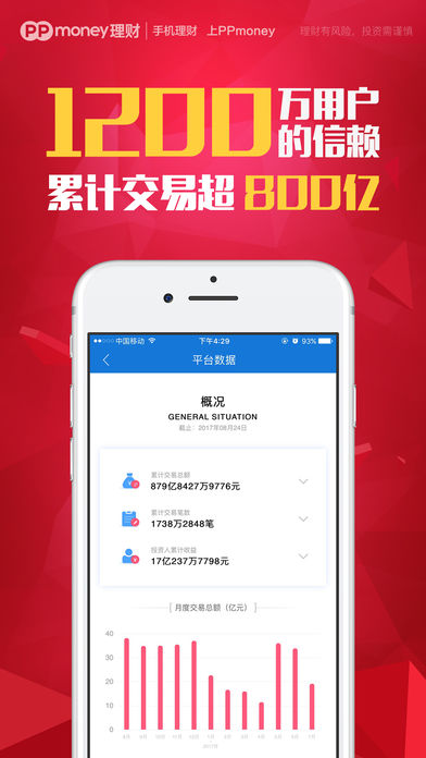 【PPmoney理财全面接入银行存管系统】 PPmoney理财率先响应监管要求,携手厦门银行,正式实现全面接入银行存管。银行存管实现了平台自有资金与用户资金完全隔离,实现了全面符合监管要求,切实保障投资人资金安全。 已上线的PPmoney理财银行存管系统,六大核心措施,严格保障用户资金安全: 1、系统分账监管 2、用户资金存管 3、银行系统密码 4、用户授权操作 5、资金流水监管 6、杜绝资金挪用 【手机理财,上PPmoney】 PPmoney理财是万惠集团旗下手机理财平台,中国互金协会首批会员单位,专注于合规运营的行业前列手机理财平台; 专注小额分散,专注风险管理;资金去向可追踪,为您看管每分钱; 专注安全运营4年,投资用户零损失; 国内首批ICP证平台,国家三级安全备案; 1200万用户信赖的理财之选! 【PPmoney理财新手专享】 新手福利!首投1%返现最高1000元可提现+ 4500元红包可抵投资本金; 额外惊喜!累计投资满150万元,赠送128G iPhone 7Plus一台; 赚上加赚!工作30天,赚出33天的工资!新手专享高息省心宝。 【PPmoney理财平台资质】 中国互联网金融协会首批会员; 中国互联网金融杰出安全风控平台; ICP许可证的互联网手机理财平台; 广东质量诚信承诺单位; 国家安全三级备案; 【平台特点】 1、风险保证,稳定运营: 风控经验丰富的专业团队,4年平稳运营,用户投资收益无损失; 2、无投资门槛,预期年化收益6%~9.5%。 百元起即可投资理财产品,预期年化收益可达6%~9.5%,1200万用户理财之选。 3、投资期限活,产品种类多: 理财期限和收益选择灵活,产品种类丰富,帮你优化资产配置; 【联系我们】 如有问题或意见,欢迎联系我们 PPmoney官网:www.ppmoney.com 客服电话:10101212 (0900-2200) 微信服务号: wanhuitourong 微信订阅号: PPmoney520