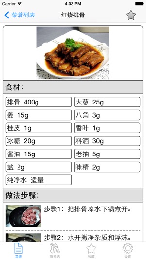 《家常菜谱大全》让您用最短的时间、最快的方式学会烹饪家常的各种美味佳肴! 《家常菜谱大全》图文并茂的列出了烹饪所需的食材、制作步骤、营养搭配以及口味等。 《家常菜谱大全》支持全文检索,输入食材、菜名等信息均可检索。 《家常菜谱大全》完全离线,无需联网。 《家常菜谱大全》支持随机选择,摇一摇手机即可随机选。 《家常菜谱大全》具有收藏功能,一键收藏。 《家常菜谱大全》是居家必备的菜谱。