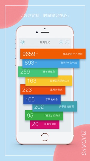 **App Store 中国区分类 TOP1 **连续在香港,台湾,澳门等被 App Store 推荐 **「最美应用」官方出品 最美时光来帮你记住那些重要的日子。你来到这个世界上多少天了?在这个城市多久了?还有多久放假?多久考试?爱情中那些重要的日子?优雅的图片、清秀的文字、简约的界面,只有这些才配的上生活中那些重要的日子。最美时光可以帮你计算出来、记录下来,定时提醒你,还可以作为精美的图片分享出去。 【主要功能】 • 用长度表示时间 - 还剩多少天,一目了然 • 图文搭配 - 是不是觉得用文字不足以表达你在那天的心情?没关系,我们可以用图片来讲故事 • 年月日不同模式 - 想…