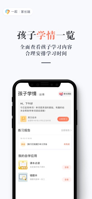 家长通是“一起教育科技”旗下面向所有小学生的家长端应用。使用家长通APP,您可以及时接收老师的消息与老师进行家校沟通。查看孩子的学习记录、学习报告、错题本等同步课堂内容。使用课本点读机、随身听、绘本阅读等学习工具。阅读形式丰富的语文、数学、英语兴趣拓展资讯。 功能简介: 【搭建家校沟通桥梁】及时接收老师推荐的练习通知、学习报告等内容; 【详细的学习报告】孩子的练习内容、、完成时间、完成情况、知识点掌握等情况全知晓; 【智能错题本】系统自动记录孩子的学习情况,收集错题内容,找出孩子薄弱环节,提供类型题练习,提高孩子学习效率,让学习更有针对性; 【手机里的点读机】覆盖小学一年级到六年级的语文、…
