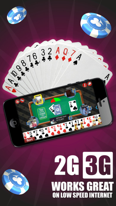 Indian Rummy by Octro has LIVE TABLES for Rummy, and you play with REAL PLAYERS from all around the world. Indian Rummy is played between 2 to 5 players and each player is dealt 13 cards. For 2, 3 or 4 players two 52-card decks (104 cards) and 4 jokers (wild cards) are used. For 5 players three decks (156 cards) and 6 jokers are used. The object is to form Runs (or sequences) and Sets. And when a player has formed required runs and sets using all 13 cards, the player declares his turn. On a valid declare scores of the rest of the players are counted. Table Rules =========== 1) Minimum two runs (sequences) are required. 2) One of these runs (sequences) must be pure (called First Life). 3) The second run can be pure or non pure (called Second Life). 4) Either First Life or Second Life must have 4 or more cards. The requirement of first life and second life makes Indian Rummy interesting and challenging. To win a game of Rummy requires skill, use of memory, complete focus, and involvement in the game. Indian Rummy by Octro is multiplayer card game that you can play with bots (computer) and with your Facebook friends anywhere in the world. You can play in public room or in a private room where you can invite your friends and decide the bet per point. The main features of Indian Rummy by Octro are 1. Play with real players anywhere in the world 2. Create private rooms 3. Easy and unique interface that uses a real play like moves to pick a card, discard a card and declare your cards.