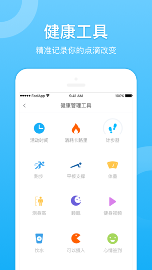 Feel 是一款移动健康应用,更是一种生活哲学。主张每个人都应不断提升自己的健康状况、改善不足与恶习,保持积极健康的生活态度。Feel结合人体健康大数据和人工智能AI算法,并在顶级行业专家的督导与陪伴下,已为超过4500万用户精准定制了50000+种健康管理服务,涵盖十大健康类别,帮您轻松实现健康生活目标。 在Feel,我们可以帮您解决: 减肥瘦身 科学增高 健身塑型 美容护肤 男性、女性私人健康指导 优化心理健康状态 饮食营养调理和治疗服务 慢性病、职业病的管理和治疗 产后的身材和心理等问题的调整和恢复 改善不良的生活习惯 ………. 以上等等一系列困扰您的生活和健…