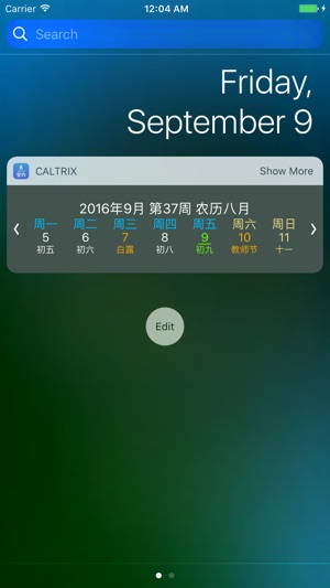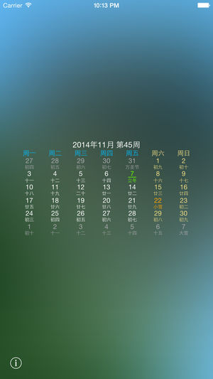 在通知中心显示农历、节气、节日以及法定假日。 日历中的操作: - 双击日历左边进入前一周(月)。 - 双击日历右边进入下一周(月)。 - 双击日历中间回到今天。 - 单指三击切换视图。 - 单击日期打开系统日历进行查看。 - 双指单击打开设置。