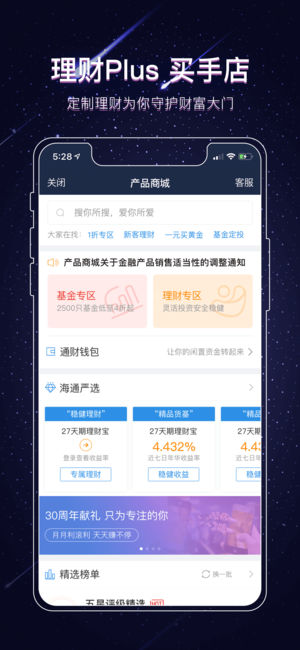 海通证券成立30周年,感恩回馈! 【新开户专享】新客理财特权、账户余额理财 【老客户特享】稳健理财、优选基金、明星私募 e海通财是海通证券依托30年的行业经验,精心打造的标杆式炒股理财APP,为广大客户提供一站式综合财富管理服务,是千万股民共同的选择。 --------------智能矩阵-------------- 【智能盯盘】 股价预警、大事提醒,更有7大策略盯盘; 捕捉下单好时机,只为更轻松地投资 【智能账户】 盈亏一目了然,每日交易复盘; 6大维度洞察投资能力,工具课程匹配提升 【智能客服】 7*24小时温馨守候,自然语言交流无障碍 【智能选股】 基本面、技术面、舆情、大数据选股,…