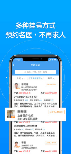 好大夫在线,能找到19万公立医院医生的APP!好大夫,都在好大夫! 全国19万公立医院医生,为患者提供在线问诊、挂专家号、在线开药、私人医生、视频门诊等全方位服务,一站式解决看病问题,12年服务超4600万患者! 【在线问诊】查擅长看评价选医生,全国三甲医院顶级专家本人回复,图文、电话、视频形式任选。 【挂号】多种挂号方式,预约名医,不再求人 【在线开药】网上找大夫复诊开药,配送到家 【私人医生】专属医生提供全程疾病管理,长期照护 【VIP通道】尊享5大特权,全程绿色通道,医疗管家式服务