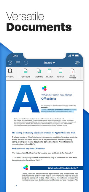 使用 OfficeSuite 您可以轻松创建、查看和编辑 Word、Excel 和 PowerPoint 文档,并可执行高级 PDF 操作。 集成了文件管理器,它是功能最强大的移动办公解决方案之一。 OfficeSuite 具有您非常熟悉的界面,易于使用,使用时您会感觉好像用了很多年。 文件管理器 • 登录后可获得 15G 的 OfficeSuite Drive 云空间 • 轻松访问您收藏的文件和最近访问的文件 • 模板可帮助您创建各种精美文档 • 管理多个文件 - 复制、移动或删除 • WiFi 文件传输 - 可从网页浏览器访问您的 iOS 设备文件 • 在整个应用和所有连接的云服务中…