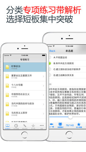 专项练习——全面覆盖事业单位考试考点,分类专项突破,含解析 真题解析——历年各省市真题解析,押题几率高 面试解析——历年省市事业单位面试真题及解析 超大题量——60000道各类事业单位试题满足考生练习及测试的需求 随机模拟测试——随机生成模拟测试,检验复习成果 错题库——可自动加练习过程中错题加入收藏,以便反复练习。 复习库——可在练习过程中自行收录题目到收藏夹,形成自己的小题库,针对性练习,提高通过率。 离线使用——无广告,无需网络,方便便捷。 AppStore下载慢原因或无法下载的解决方法图文教程 http://www.app111.com/doc/100142414…