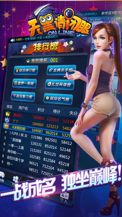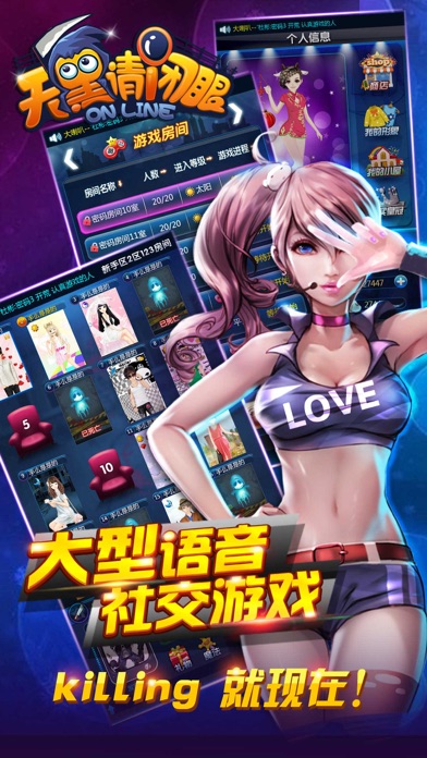 《天黑请闭眼ol》也叫杀人游戏,是一款集逻辑推理、社交休闲、口才较量、分析判断为一体的手机在线杀人游戏。(这是一个炒鸡棒的游戏啊!) 【游戏特色】 ---逻辑推理,口才较量! 这是一款既需要判断又需要演技的大型杀人游戏。拿出你的逻辑,你的口才,来演绎一局精彩的天黑请闭眼游戏吧!带着你的推理,你的分析在游戏中一展风采吧! ---一战成名,独坐巅峰! 游戏中独特的排行榜功能,让您高超的游戏能力得到全服玩家的认可;高人一等的魅力值让您成为万中挑一的男神,女神!在畅快游戏的同时体验到被玩家崇拜的快感! ---真实社交,婚姻系统! 可以结婚辣!~ (≧▽≦)/~啦啦啦!游戏中不但可以创建家族和好盆友一起结伴玩耍,还可以找到自己的意中人结为连理辣!带着您的另一半在游戏里尽情的秀恩爱吧! ---绚丽服饰,千种装饰! 游戏中百种服饰搭配方式,不同的服装搭配,多重风格的时装!小哥哥小姐姐们还在等什么,快穿上华丽的衣服一起在游戏里潇洒吧! 【关注我】 官方QQ群:385092815 官方客服:1724688388