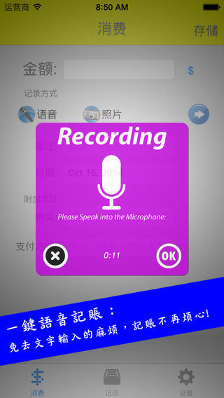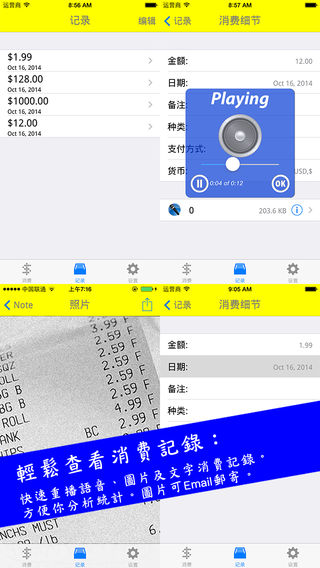 #限时冰点特价1元!请速下载!机不可失!# 我尝试过许多记账软件,但是都没能坚持使用下去,这是因为它们都太过于复杂和专业,在匆忙购物的时候很难抽出时间来完成记账。所以我开发了这款简单快捷的记账软件:闪电记账Pro。这款软件最大的优势是记账非常快捷,它的特色是主要使用语音及照相的方式来完成记账,你只需要简单的输入金额,然后对着它说几句话、或者对着购物发票拍张照片,就能完成记账,整个过程只需要几秒钟,不需要再去费脑筋的去输入各种复杂选项,大大的节省你的时间,让你能在任何匆忙的时候快速的完成记账,从而真正能够完整的追踪你的消费记录,帮助你形成良好的财务习惯。 本软件并非全功能的个人财务分析软件,你可以白天使用本软件快速的记录各种消费账单,然后晚上抽出10分钟来将消费记录整理输入专业的财务分析软件,类似的软件有很多。 本软件优点: ·消费模块: 允许你使用语音、图片或文字记录交易,它就是那么简单。 ·一键语音记账: 免去文字输入的麻烦,记账不再烦心! ·使用相机记录: 记录复杂账单的最佳方式,为你节省大量时间。 ·追踪模块: 快速查看消费记录,支持编辑、删除操作。 ·轻松的查看详细消费记录: 回放语音、图片及文字交易记录都非常方便。你也可以Email它。 ·其它: 支持多国货币; 支持添加删除支付方式、种类项目。 如有任何问题和建议,请联系:figappsstudios@gmail.com 或者访问我们的站点:http://iphonebestapp.com/flashexpense/