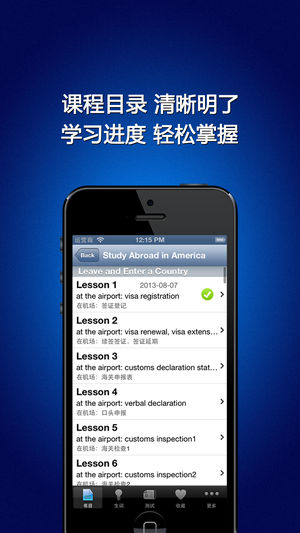 该应用专门为要在美国留学的学生以及要去美国旅行的游客打造。覆盖了衣食住行方方面面的话题,学习完该课程,您将会比较轻松的与美国人打交道。