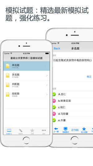 本软件为公共营养师二级考试题库的软件,精心准备了2017年最新考试模拟题库以及最新押题试卷5套(带答案解析)分为不同题型,单选、多选、技能题,包括简答题,计算题,案例分析题等。共计试题2000道。为考试的提供了充分的复习准备,可随时随地学习练习,有效帮助顺利通过考试,学习知识通过考试必备神器! 【押题介绍】 全国公共营养师二级资格考试押题试卷(一)及解析 全国公共营养师二级资格考试押题试卷(二)及解析 全国公共营养师二级资格考试押题试卷(三)及解析 全国公共营养师二级资格考试押题试卷(四)及解析 全国公共营养师二级资格考试押题试卷(五)及解析 【功能介绍】 1、押题试卷:最新押题试卷…