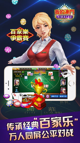 【免费大奖赛现已上线,每月百万筹码疯狂派送中!】 我的澳门(AiMacau),每日畅玩最流行刺激的澳门特色老虎机、百家乐游戏,绚丽特效,多人语音,随时随地,身临其境,让您爱不释手!现在下载还有更多活动抽大奖等着您!不要犹豫,赶快下载老虎机、百家乐游戏吧! 【游戏特色】 ◎最豪爽:每日签到奖励,连续登陆翻倍加赠,免费奖励都这么刺激! ◎最专业:澳门权威老虎机、百家乐和21点游戏规则,澳门最经典玩法。 ◎最刺激:不仅有刺激的玩法,还有更刺激的活动! ◎最真实:全面社交化的老虎机、百家乐和21点游戏,语音畅聊系统,邀请土豪一起玩! ◎最贴心:7*24小时客服支持,为您提供最便捷快速的专业服务! 【游戏种类】 ------多人百家乐–比大小,赢大奖。 ------多人21点–谁是blackjack之王? ------僵尸来咯Slots–恐怖主题老虎机,开启惊悚刺激之旅! ------五龙传说Slots–澳门最火爆老虎机,最新上线,不容错过! ------超级水果机–最经典的老虎机,原汁原味复原777最经典的老虎机! ------财神到老虎机–玩财神到,开财宝箱,百万大奖! ------赤壁之战Slots–重现恢弘的赤壁战场,驾驶三国战船火烧赤壁! ------十二生肖Slots–十二种生肖代表不同的中奖标志,中3个或者3个以上“龙”标志即可进入彩金游戏! ------幸运乐透-最高5000万大奖等你来拿! 更多澳门特色娱乐游戏不断更新中 ------免费比赛系统 日赛周赛月赛连轴转,全年竞赛不停!免费参与百家乐大奖赛,与好友壹起抢夺豪礼! ------丰富奖励系统,百万筹码送不停 每日签到大奖,在线奖励,任务奖励,升级奖励,超过万种中奖方式。 -------天天在线送好礼 任务奖励,升级奖励,活动奖励,超过万种中奖方式,让您不花钱也能尽情感受刺激的澳门特色游戏! -------绚丽特效,多人语音 全新游戏界面,绚丽得游戏特效,刺激地游戏玩法,更多人语音聊天功能,实时在线客服,尽享每分每秒的巅峰时刻。 -------玩法刺激,轻松上手 单手触摸操作,轻点即可完成下注,全自动设计,玩家无需操作即可全天24小时玩游戏,畅玩游戏无阻碍。语音交流无需打字,超低流量消耗。 【关注我们】 -官方微信号:澳门小子(关注即可获得筹码)