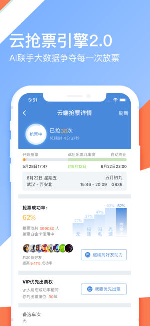 随时随地购买火车票、退票、改签。 支持学生票、儿童票、残军票。 高铁、特快、绿皮啥车都有。 火车票、汽车票、机票、专车、酒店。 伙力出行 - 高铁管家服务升级的新形态,我们致力于让出行成为美好的生活方式。从出发到抵达,从食宿到购物,我们一路陪伴,让出行不止是出行。伙力,伙伴的力量。 【离线抢票】云服务器自动帮抢,手机关机也在抢票。 【捡漏抢票】余票24小时监控,一旦有人退票,就抢。 【自动抢票】不仅可以自动下单,还可以自动付款。 【上车补票】图形化提供上车补票方案,清晰地选择购买短途票先上车。 【在线选座】靠窗、靠走道、优选下铺、同包厢,自选指定席位,送票上门。 【绿色通道】未核验通过以及…