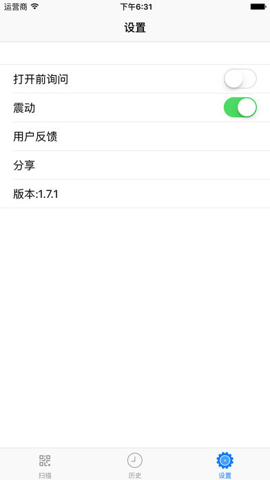 支持所有条形码和二维码扫描! ※※※扫码比价使用说明:扫描条形码--》打开历史--》点击扫描记录,即可看到相关商品信息※※※ iPhone & iPad必备app,简单且方便使用! 二维码条码是一款免费的手机条码扫描软件,用户可以使用它识别二维码/条形码。 即开即扫,一扫比价,流畅、直接、简单快捷,支持GPRS网络“0”流量控制。 二维码 ,又称二维条码,二维条形码最早发明于日本,它是用某种特定的几何图形按一定规律在平面(二维方向上)分布的黑白相间的图形记录数据符号信息的,在代码编制上巧妙地利用构成计算机内部逻辑基础的“0”、“1”比特流的概念,使用若干个与二进制相对应的几何形体来表示文字数值信息,通过图象输入设备或光电扫描设备自动识读以实现信息自动处理。它具有条码技术的一些共性:每种码制有其特定的字符集;每个字符占有一定的宽度;具有一定的校验功能等。同时还具有对不同行的信息自动识别功能、及处理图形旋转变化等特点。 产品特点: 1.简约,时尚的UI界面 2.分享到不同的社交网络 3.最快的扫描速度 自动识别的QR码和条形码 1.支持各种QR代码和条码扫描 2.注意力集中在追求超快速的识别速度,超高扫描的成功率! 3.快速,轻松地,是我们一贯的设计理念! 这是最快的二维码扫描解码工具,保证最快速度打开 软件、解码.不断的优化算法,优化查询时间. 在实际使用过程中,为使用者争取每一毫秒! 认真做好功能减法,专注二维码解码和生成服务.长时 间专注才能做的最好。 *长期专注二维码领域,获得百万用户首选,好评如潮: “扫描速度快,是生活的好帮手。” “支持优秀软件,界面简洁!感谢开发商!” “确实是最快的扫码软件!” “模模糊糊的也能扫描成功,赞一个!” “是工作中的必备品,推荐给了很多朋友。” *小知识: 二维码是一种可读性条码,主要用在网络资源存储、信息传递、保密应用、物流跟踪、备援应用等方面