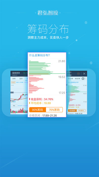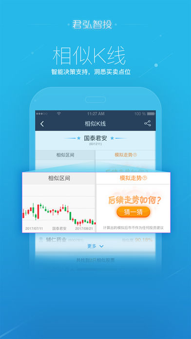 版本简介: 国泰君安手机APP应用品牌全新升级,以“国泰君安君弘”品牌继续领跑证券行业互联网金融,始终如一地为广大投资者提供丰富的交易品种、金牌研报资讯、全市场极速行情、策略交易、云服务等一站式投资理财服务,我们秉承诚信、责任、亲和、专业、创新的理念,为您的投资保驾护航。 特色功能介绍: 1.沪深港美、全球行情尽在掌握,股票、债券、基金、期货、外汇等一应俱全。 2.智能分析个股表现,洞悉资金动向;多种策略帮你盯盘,止盈止损,反弹买入,回落卖出,就是这么牛叉。 3.手机证券开户,一分钟成为尊贵客户,畅享更全面的投资理财服务; 4.专业研究报告,第一时间直接送达,本土最佳研究团队全方位为您的投资出谋划策; 5.热搜个股明察市场秋毫,账户分析比你自己更懂你。 6.微融资——百元起借,用途灵活,利率优惠,为您的融资提供便利。 7.行情刷新毫秒级响应,从容应对瞬息万变;分时图闪电下单,委托下单分秒必争。 8.自选股与精华资讯云端收藏,手机、PC跨平台同步; 9.全新交易界面,操作简单,持仓与资金一目了然。 10.在线投顾直连您的专属服务人员,时刻响应您的每一个需求。我们服务,您,任性。