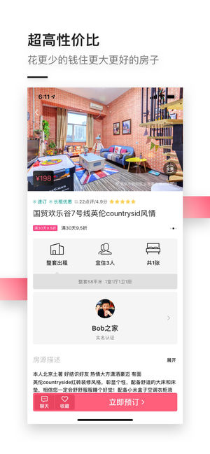 酒店之外,就住小猪!不同的旅行目的地,相同的标准化房间,旅行就该如此?当然不是,来小猪,每一次出发都能让你遇见惊喜。小猪为国内领先的特色住宿预订平台。截至2019年5月,小猪全平台共有超过80万间房源,分布在全球超过700座城市及目的地,包括民宿、客栈、城市公寓、轰趴别墅、树屋、书店等。多样的特色房源,可以满足你外出旅行、商务出差、朋友聚会、情侣约会、求医、求学、求职的每一种住宿需求,是酒店之外的预订首选。 在小猪,你可以栖息于山海间,酣睡在市井胡同;也可以住进INS风网红民宿打卡,去体验老洋房、四合院。从北京到三亚,从海边到深山,从国内到海外,无论是冰天雪地的漠北,还是万绿归宗的云南,或是…