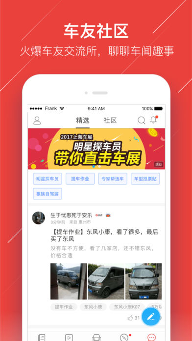 车友头条,驾考宝典兄弟产品,为您提供学车买车用车养车多场景内容服务,从学车菜鸟到玩车达人,我们都可以跟你聊一聊,让您一个app通天下车! 7*24小时不间断更新,最新汽车资讯一手掌握。 学车不知道有哪些坑?车友头条告诉你。 买车全包价、落地价到底是什么鬼?车友头条帮你来科普。 用车养车怎样少花冤枉钱?车友头条各种实用小妙招,帮你省省省。 我是菇凉,这些太枯燥,没兴趣看?不着急,我们还有为您细细挑选各种精选内容,茶余饭后、如厕睡前随便瞄几眼,就能获得撩男神插科打诨的超酷谈资,瞬间让男神对你刮目相看! 功能亮点 【头条】 1.聚合海量新鲜内容,下拉总有新内容,及时追踪汽车资讯热点; 2.娱乐化实用攻略,覆盖学车买车用车养车全场景; 3.汽车行业的“今日头条”,目前已收录汽车之家,易车网,太平洋汽车,爱卡汽车,新浪汽车,搜狐汽车,腾讯汽车,网易汽车,凤凰汽车等数百家汽车媒体资源,给你不一样的新鲜视角; 【视频】 不只是汽车,搞笑、美女、社会…边看边评欢乐多多; 【发现】 1.海量新车视频、车型评测精选内容,打造属于车友自己的汽车新闻APP; 2.刷爆朋友圈,好玩有趣停不下来; 【社区】 驾考宝典用户参与度极高的汽车论坛。汽车车迷的汽车之家,看车友互动吐槽不断,po美照、晒爱车。 【联系我们】 官方群:285948602 商务合作:app@mucang.cn 官方网站:www.mucang.cn