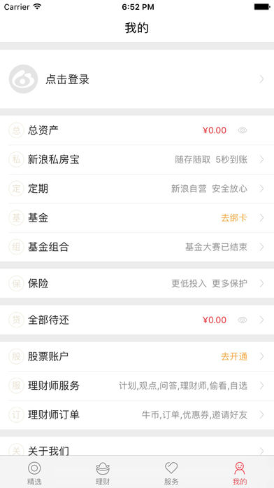 新浪金融是新浪集团下的综合金融服务平台,通过大数据、金融科技、专业理财师,精选小贷、基金、定期、保险等理财产品,打造个性化的投资理财服务平台。 新浪理财师App全新升级为新浪金融App,统一使用微博登录方式,原微信微信登录用户,可在微博登录后通过手机号绑定原有账户。 精选优质基金、赚取零花钱;精选定期理财,超高收益 ;精选小贷保险,安全可靠。新浪金融,精选为你。 【精选】 精选借钱、定期、基金、私房宝、保险,一应俱全;投资资产一目了然,收益情况每日更新;精选推荐,文章深入剖析投资理财之道。 【理财】 主题基金,基金研究团队专供;定投牛基,省心省力赚钱;新浪优选,带你抓住新基会 【服务】 高手论市,牛人操盘,享受“计划”、“观点”、“问答”等专业理财师生产的投资理财咨询产品,总有一款适合你! 【我的】 资产类目一一展示,查询资产更加清晰 【联系我们】 新浪金融客户端QQ群:621583612 这里可以随时吐槽、分享、评论哦~~