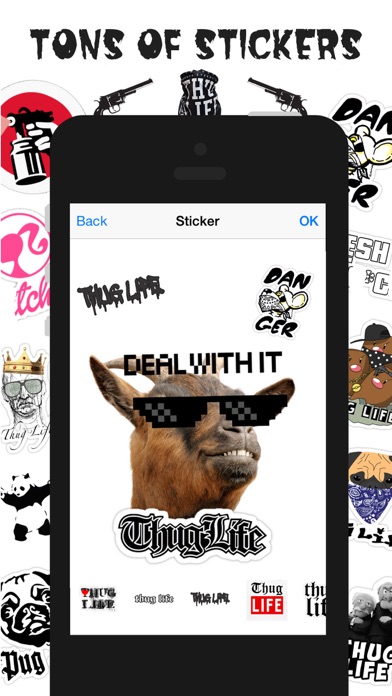 Make coolest Thug Life photos and videos with Thug Life Maker. You can also make the funniest videos with other amazing modes. Features: -You can make Thug Life Photos, Videos & Slideshows in a few easy steps -You can make fail videos with Wasted mode and Uh huh! This my sh*t mode -You can combine your videos with popular video memes -You can make Straight Outta photo memes -171 cool stickers -37 Thug Life themes -You can pick and use a song from your library -Cool image effects -Touch to record camera for best recording experience !!!--For Best Results Please Update Your Device to Latest iOS Version--!!! *How to make videos* -Record or choose a video from gallery -Trim unwanted parts of the video -Choose a Thug Life moment from the video. -Add stickers, image filters, text or draw to make a cool Thug Life moment -Choose your theme -Share your video to the world! *How to make photos* -Take a photo or choose from gallery -Add stickers, image filters, text or draw to make a cool Thug Life moment -Share your photo to the world! *You can share your video on Vine and Twitter* -Save video to camera roll -Open your video inside of Vine and Twitter apps Disclaimer: Any images, text and media content within this app are copyright to their respective owners. In creating this application, we assert its rights under the Fair Use doctrine pursuant to United States copyright law and the equivalent in other jurisdictions.