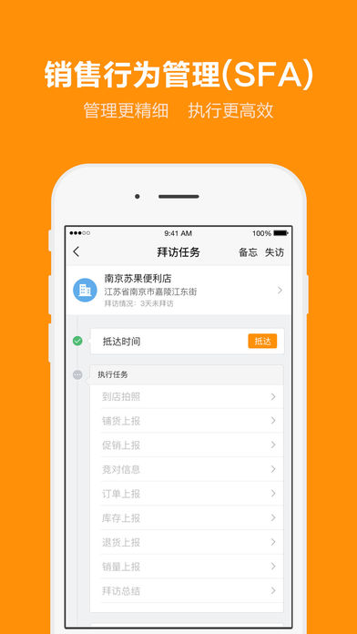 外勤365是基于移动互联网的企业销售管理平台,致力于为企业客户提供全方位的“线下销售管理”解决方案。外勤365拥有SFA(销售自动化)、进销存、DMS(经销商管理)、PMS(促销管理)等产品功能模块,帮助企业精准高效的管理销售团队,包括直销、分销、督导、促销管理等;管理客户,包括经销商、批发商、终端门店管理等;管理商品,包括订单、库存管理等。外勤365深入行业,以“提升企业线下销售效率,帮助客户成功”为使命,迄今已为超过200,000家企业提供云产品及相关服务,包括众多全国乃至全球领先的集团及上市公司。 注意: 持续的GPS后台定位可能会减少您的电池续航。 Notes: Continued use of GPS running in the background can dramatically decrease battery life.