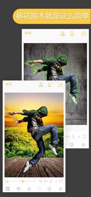 主要功能: *多种抠图工具 一般情况下自动扣图功能能应对90%以上的场景,对于某些目标及场景过于复杂的图片,自动扣图不能导出完美的结果时,您可选择智能画笔,刷子,智能套索,形状等多种抠图工具进行结果修正,以确保专业完美的扣图效果。 *100多种滤镜 您可以创建投影,高光,描边,现代艺术,卡通,模糊,玻璃,铅笔,动画书,马赛克等特效,多达100多款独有特色的特效。 *强大的图像合成功能,无缝合成多张图片,效果惊人。 *大量精美贴纸及背景素材,帮您移花接木神奇旅行。 *完全支持透明PNG图片 支持导入透明PNG图片,支持导出透明PNG图片 *强大的照片编辑器 包含你所想象到的全部照片处理功…