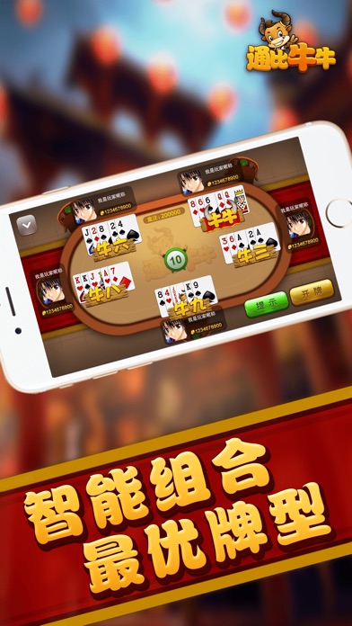 《通比牛牛》是一款游戏速度极快、考心算的牌类对战游戏,画面精美,有趣更好玩,娱乐随时随地开始,是睡前路上休闲小憩的最佳游戏! --- 游戏特色 --- 【自动整理最优牌型】 系统自动整理最优牌型,让牛牛更简单便捷; 【独创“癞子”玩法】 独创的大小王作为“癞子”百搭玩法,更多牛牛,更多刺激; 【全民混战,一决高下】 同桌玩家相互比较,你能在全民混战中脱颖而出吗? 【无庄家,不下注】 无须选庄,无须选择下注,真正的快速游戏,真正的更爽更刺激!
