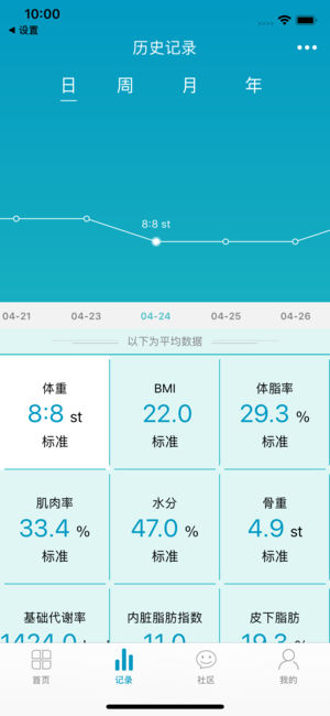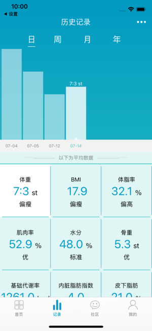 智能好用的身体管理APP,配合蓝牙智能健康秤辅助您进行身体管理,体重称量、科学分析身体数据,进行记录和管理。你可以管理您的体重、BMI、体脂率、蛋白率等多项参数,全面关爱您的健康。 1、18项身体数据,全面分析健康数据 利用BIA生物电阻技术,以体重以及身体固定数据(年龄、身高)借助科学公式计算,计算出BMI、体脂率、肌肉率、水分、骨重、基础代谢率、蛋白率等18项身体数据,帮助你管理身体。 1、 创建多个用户,关爱家人健康 一部手机可添加多位家庭成员,系统智能识别不同的用户,准确记录数据,一台秤全家享。 2、 分享“好身材”历程 好身材提供了多个平台数据分享,和好朋友一起分享你的好身材历…