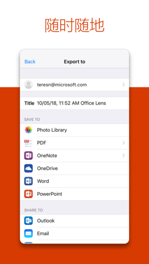 Office Lens 不仅可以剪裁、强化白板和文档的图片,而且能识别其中的文字。Office Lens 还能将图像转为可编辑的 Word 和 PowerPoint 文件。 Office Lens 是极其方便的袖珍型扫描仪。它能将白板或黑板上的笔记转化为数字内容,有如魔术一般。你可以随时随地便捷地找到重要文档或名片,随手涂写想法并拍照以供以后参考。你再也不会丢失收据,也不必再在大量便利贴中翻来找去! 适用场景: -捕获和裁剪白板或黑板的图片,并与同事共享你的会议笔记。 -创建打印文档、名片或海报的数字副本,并精确地修整它们。 -(通过使用 OCR)将自动识别打印和手写文本,你可以搜索图片…
