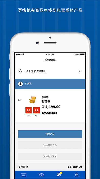 IKEA Store 应用现已推出,让商场购物变得更方便、更轻松。它不仅能用于规划行程,还能在你到达商场后帮你找到并记住所需的产品,堪称购物良伴。 井然有序 浏览并搜索宜家产品系列,然后将产品添加到购物清单中。已经在宜家网站上创建了购物清单?只需登录应用,即可在应用中直接访问你的购物清单*。 规划行程 根据你所在的位置寻找最近的宜家商场,并查看营业时间和驾车路线。了解产品在所选商场的库存情况,安排最佳购物时间。 前往宜家 查看购物清单中的产品在商场中的位置;获取有用提醒,避免遗漏扫描条形码、二维码和产品编号,了解产品信息或将产品添加到购物清单中。将手指放在产品上并向右滑动可将其标为已购产品,向左滑动则可将其从清单中移除。 消息灵通,省钱能手 你当地的宜家商场总有活动在进行。该应用可让你随时了解活动、优惠和新品。注册或登录宜家会员俱乐部帐户,即可随时使用数字化的宜家会员卡,帮你成为省钱能手。 — — * 目前,该应用只能同步网站上最近保存的购物清单。 部分功能可能无法在某些国家/地区或某些宜家商场内使用。 使用本应用,需遵循《应用许可协议》。
