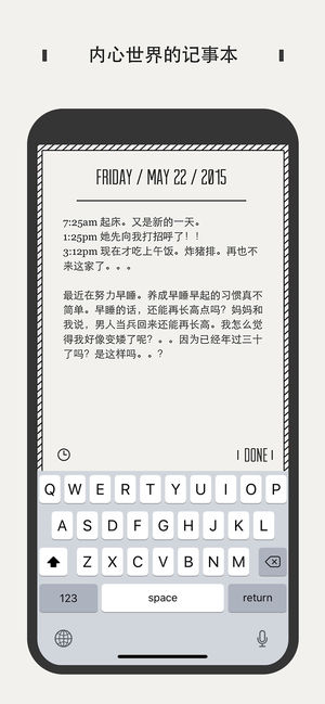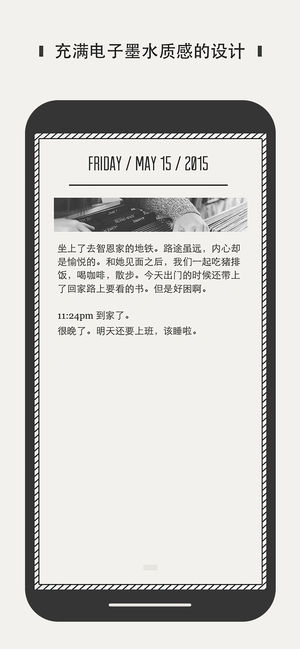今天一天过得怎么样?把你的故事分享到Daygram吧 【最美应用】官方推荐,关注最美应用微信公众账号nice-app,每天一个好应用。 Daygram是一款充满电子墨水质感的日记应用。 界面设计极简主义,一日一句,记录日常生活,有助于养成每天写日记的习惯。回顾今天,记录今天,感受今天,期望明天。 一目了然的界面,简便直观的用法。为您带来超乎一般日记应用的使用体验。 日记 –- 一种和自我本真的对话方式 一日一记,整理想法,提升写作能力,平复内心世界。 ■ 视图 - 时间轴、全屏显示 ■ 预览 – 主界面可预览每日日记的前一行或前两行文字 ■ 隐私 – 用户自行设置密码,可使用touch…
