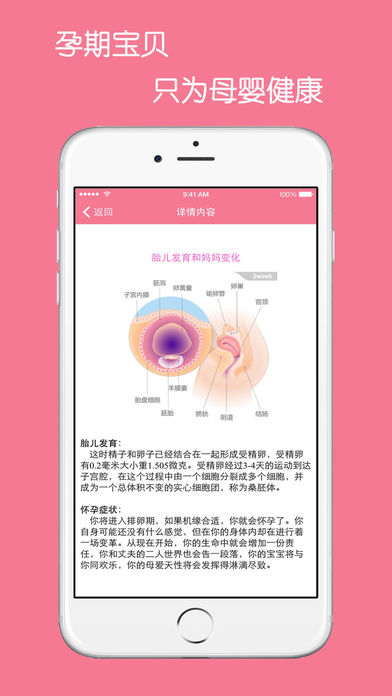 孕妇怀孕期是需要加强营养的特殊生理时期,因为胎儿生长发育所需的所有营养素均来自母体,孕妇本身需要为分娩和分泌乳汁储备营养素,所以,保证孕妇孕期营养状况维持正常对于妊娠过程及胎儿、婴儿的发育,均有很重要的作用。 孕期宝贝:最新最全的怀孕40周准妈妈的孕期注意事项,从怀孕知识,胎教知识,孕期性生活,孕期注意事项,孕期营养食谱,准爸爸学堂等方面都做了详细的介绍,为您悉心指导,只为母婴健康。 【功能介绍】 ◆40周全程育儿胎教宝典 ◆提供准妈妈怀孕期间最全的保健、饮食资讯! ◆怀孕期间饮食禁忌 ◆注意事项每周提醒 ◆指导准爸爸积极配合孕妈 科学实用,简单明了,离线防辐射查看,孕期必备