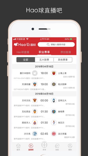 职业赛事直播+Hao球赛事直播+Hao球赛事工具 赛事直播,从国际足球赛事直播的推荐,再到全国级、省级、市级、县级,甚至社区级别的足球赛事直播,尽在Hao球! 我们不单有直播,在Hao球工具里还有赛事一站式解决方案,你可以通过赛事数据和直播功能,打造自己专属的赛事页面,按职业标准来包装赛事,让赛事越来越高大上。 大家自由地聊球、侃球、吐槽……尽情享受足球运动带来的快乐! 看好球,上Hao球!