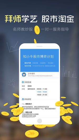 知牛财经——股票达人直播互动平台 汇聚全国知名投资理财顾问、股票高手在线视频股票直播,解读股市大盘走势。投顾股市实盘直播教你炒股票。找牛股,交牛人,上知牛财经! 在这里,你可以 【手机围观牛人炒股】 投资顾问、股票分析师、股票高手,全天股市行情实盘股票分析指导炒股金融理财 【股市热点了如指掌】 股票高手视频直播分析每日股票投资理财行情,让你对A股、港股、美股行情热点了如指掌 【专业投顾即时荐股】 投资顾问指导炒股,分析财经新闻捕捉股票先机,推荐理财产品投资策略 【拜师学艺入门炒股】 投资顾问辅导,拓展股票视野入门级股票玩家投资理财胜券在握 【看股票视频学炒股】 看炒股公开课视频教程,学习专业…