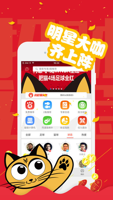 喜讯:不断有用户来电表示,跟踪学习竞彩猫专家推荐后斩获任九、十四场大奖,多种竞彩串关玩法更是得心应手。 竞彩猫APP,专为广大竞彩爱好用户提供竞彩、足彩、篮彩等体育赛事精准推荐。 1、竞彩猫--专做竞彩、北单和任九赛事的预测的APP,实名专家经验分析,百万用户买彩指导首选应用!看比赛不如看竞彩猫,不看比赛更要看 竞彩猫。 2、金球奖评委赫曼、国内一线解说员:杨毅、颜强、刘嘉远、魏翊东、朱彦硕;还有彩票培训师:曲昌春、杨天婴、杨澍、单鹂等诸多高手。 3、赛前出票晒实单,多年实战经验的专家指导用户如何购买;赛后经典场次复盘,告知用户输赢关键在哪里。 4、竞彩王,专家孵化器,简单容易好上手,只要你够准,只要你够红,下一个专家就是你! 5、我们还拥有独门指数产品--竞彩猫指数,捕捉冷门赛事利器。通过对全球可参考性公开交易市场的数据进行加权复合计算得出每场比赛的相应 数据走势图,用科学的分析工具和图表指导彩民避开热门玄机,挖掘冷门再出击! 6、免费专区、中欧对比、竞彩赔率回查、比分直播等小工具,不花钱也能玩赚竞彩。 想中奖?上竞彩猫APP!