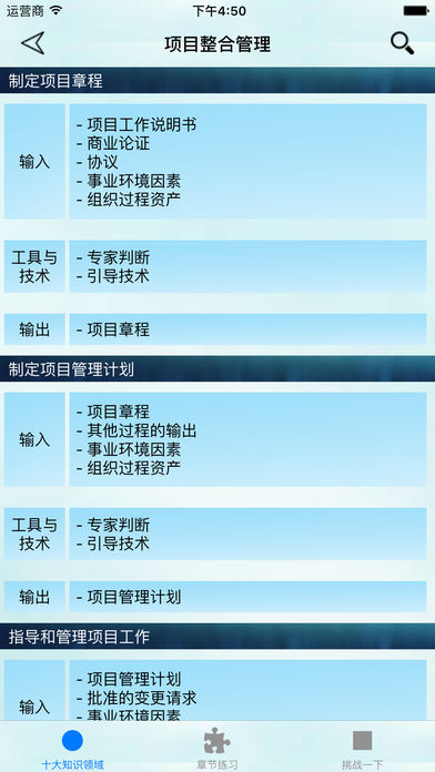 如果你想考PMP却苦于没有时间; 如果你想攻克ITTO却不甘心死记硬背; 如果你想利用时间碎片准备PMP考试; 那么,帮你学ITTO就是你正在寻找的APP。 帮你学ITTO是一款PMP备考工具,涵盖PMBOK第五版十大知识领域的输入、工具与技术及输出;无论你身在何处,都可以随时利用时间碎片温习考试内容、通过反复训练掌握知识点。 帮你学ITTO包含: - PMBOK十大知识领域ITTO回顾 - ITTO搜索,可查看所有相关过程 - 单个知识领域的ITTO练习 - 十大知识领域的ITTO混合测试