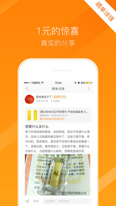 【1元云购一惊喜无限,突破200亿!】 1元云购2011年上线,参与人次突破200亿! 深圳一元云购网络科技有限公司推出1元云购网,是“我为人人、人人为我”的新型互助的一元云购购物商城。 【云购规则】 把1件商品平分成若干“等份”出售,当1件商品所有等份售出后抽出1名幸运者,该幸运者即可获得此商品。 1、每件商品参考市场价平分成相应等份,每份1元,1份对应1个云购码。 2、同1件商品可以云购多次或1次云购多份。 3、当1件商品所有等份全部售出后计算出幸运云购码,拥有幸运云购码者即可获得此商品。 4、幸运云购码计算方式: ①取该商品最后购买时间前网站所有商品100条购买时间记录(限时揭晓商品取截止时间前网站所有商品100条购买时间记录)。 ②时间按时、分、秒、毫秒依次排列组成1组数值。 ③将这100组数值之和除以商品总需参与人次后取余数,余数加上10,000,001即为幸运云购码。 【1元云购客服电话】 4000-588-688 【1元云购官网】 www.1yyg.com 特别说明: 深圳一元云购网络科技有限公司(1元云购)在此申明,您参与的任何购物活动与苹果公司无关。