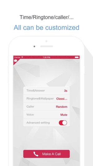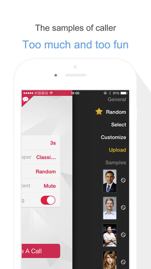 1.83版本重大突破,现在你可以和全球用户一起玩来个电话了! 上传任何你喜欢的来电人头像,配合任何你喜欢的来电语音内容,让全球百万用户“接听”你的电话! 以及超级贴心的Today Widget让你神不知鬼不觉启动来电! iOS8完美支持!100%原生界面声效! 无穷的来电人样例和来电语音内容! 依然无任何广告! 十大国际语言支持(简体 繁体 English Deutsch Français 日本語 한국어 русский Español العربية Türkçe) 注意! 来个电话受限于iOS系统,所以使用时请不要锁定手机或HOME退出。 为了逼真效果,挂掉电话等于退出应用,可以再次运…