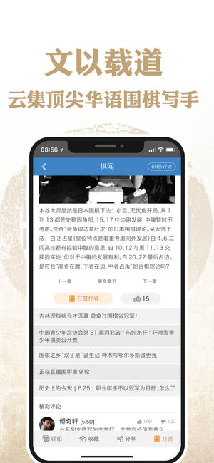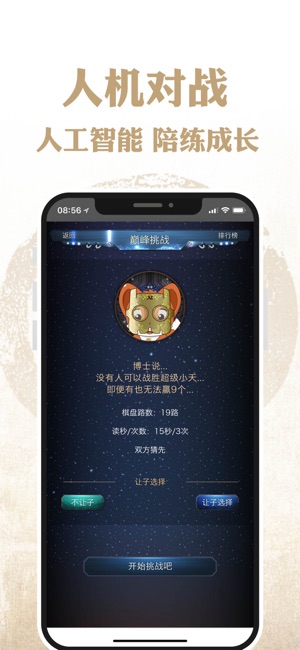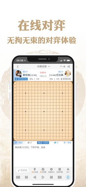 “弈客围棋”APP是一款基于围棋社交理念的新概念软件,刚对围棋感兴趣的朋友也可以通过电脑AI和正版视频教程轻松入 门,快来加入吧。 【趣味死活闯关】职业棋手为你精选出了5个难度,近千道死活题,边玩边提高。 【人工智能陪练】顶级AI陪练提高,分析历史棋谱。 【特色对弈体验】与棋友畅快地享受下棋的乐趣,帮助您深度思考,提高棋力,结识棋友。 【关注世界比赛】围观大赛直播、与职业解说互动,获取时时的比赛新闻和棋手资讯。 【成长认证体系】更科学的ELO成长体系为您找到棋力相当的弈友、参加官方认证。 【棋谱收集分享】个人棋谱库功能帮助您管理、分享和导出海量棋谱和题库。 【组织棋友比赛】棋友和俱乐部可以自主…