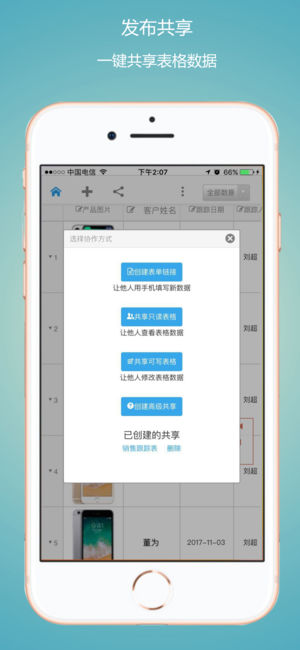 超级表格是一款实用的在线表格,可实现多人同时进行一张表格的浏览、修改和共享。 超级表格支持支持微信、手机APP、手机浏览器、PC浏览器等版本,数据同步。 [产品功能] ①共享表格:将自己创建的表格共享给他人协作,数据同步更新。允许发布只读表格和可写表格。 ②收集数据:把表格以表单的形式发布出去,收集的数据自动整合在表格中,适用于活动报名、数据收集等。 ③发布搜索页面:为表格发布一个搜索页面,允许您的用户通过对关键词的搜索,查询到表格中中记录。 ⑤视图功能:在电脑端设计的表格视图,可以在APP端展示。视图有三种:局部表、透视表、统计图。 ⑥各种类型字段:支持文本、金额、下…