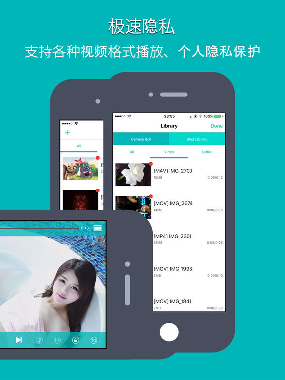 HPlayer 视频播放器 - 装机必备,欣赏内涵小电影最佳伴侣,超过千万用户选择! HPlayer 视频播放器 - 支持多种视频格式播放以及视频储存加密,同时还具备私密文件储存浏览功能,可以说这款应用既是万能视频播放器也是个人隐私文件保护利器! 视频播放 ●可高清流畅播放视频文件 ●无需转码,无需安装第三方插件,直接播放 ●可识别手机上的所有视频 ●支持视频删除功能 ●支持主流视频格式 ●视频格式: MOV、MP4、MPV、3GP、MKV、RM、RMVB、WMV、FLV、AVI、MPG、MPEG、DAT、VOB、ASF、M4V、TS、M2TS.... 字幕格式: ●DVD,DVB,SSA,ASS 等。 ●.ssa / .ass ●SAMI(.SMI) ●SubRip(.SRT) ●MicroDVD(.SUB) ●VobSub(.SUB / .IDX) ●SubViewer2.0(.SUB) ●MPL2(.mpl) ●PowerDivX(.psb) ●TMPlayer(.txt) ●Teletext ●PJS(.pjs) ●WebVTT(.vtt) 隐私保护 ●需要登录密码才能访问 ●支持指纹解锁 (Touch ID) ●可选便捷图形(手势)锁登录 ●可选文件夹密码 — 用户可选择为任意文件夹深度加锁 ●配备伪装密码 — 输入伪装密码,掩饰真正的隐私 ●登录报告 — 任何有意偷窥者的照片和地理位置信息都可尽收眼底 视频传输 ● 通过 iTunes 导入导出视频/文件更快速 ● 设备间可通过蓝牙快速互传视频/文件 ● 支持 AirDrop 传输视频和照片 ● 支持本地视频以及相册照片的导入导出 ● 应用内部可添加秘密记事及录音 ● 支持 Email、Facebook、Twitter、微信分享照片 ● 支持短信发送照片 文件浏览 ● 照片画廊般的展示 ● 超越原生照片应用的幻灯片显示 ● 内置音乐播放器(支持后台播放及耳机线控) ● 内置文档阅读器