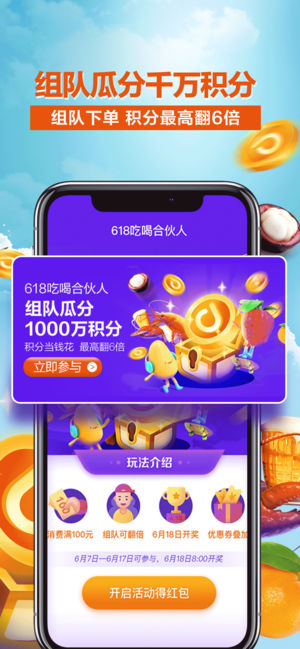 618吃喝在多点,秒杀、1元购、爆品直降、满199减100...超多活动等你来,年中爽购大饱口福!6月14日18:00狂欢开启! 多点App,50000000+用户的选择! 【好货送到家,不用自己扛】 没时间去超市?米面粮油拎不动?天热不想出门?打开多点app,无论在家、在办公室还是在上班路上,随时随地下单,万款生鲜日用配送到家! 【购物新方式,结账不排队】 逛超市用多点智能购(自由购、自助收银机、智能购物车)体验购物新方式,最快3秒买单不排队。 【海量活动,为你省更多】 积分抵现、优惠券发放、满减、秒杀、单品特价……更有会员日、免邮日、周末大放价、月度狂欢等定期约惠不…