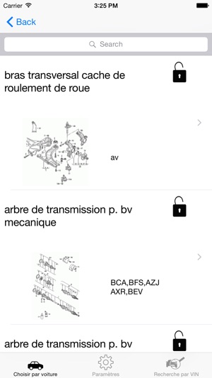 移动应用«大众汽车零部件及图“包含有关零配件,关注大众的汽车全部信息。有了这个应用程序,你可以看到你的车的结构,并找到任何零部件,所有零部件都显示在图(方案)。 信息划分成块:变速箱,车身,制动系统,电气系统,引擎,底盘等; 该方案是不断更新的新车型和零部件。