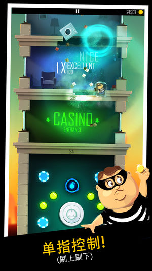 银行职员通常都友好和有礼。这一次出事了!拿尽可能多的钱!快!每个人都要抓你,但你很聪明,不是吗?查找赖以生存的提速组合,捷径和充电。 精采的特色: - 可击碎的障碍: 墙壁,家具和更多!可以的话便尽量破坏!撞碎墙壁,地板和看那碎片横飞! - 解锁可代入小偷和疯狂的充电 - 用视网膜屏幕显示图像 - 每次玩都不一样! - 只需一只手指控制!(刷上刷下) 快速上手即玩 - 游戏中心的成成绩和排行榜 - 普遍适用: iPad, iPhone 和 iPod Touch 原始分辨率 为你最大、最疯颠和最狂野的冒险之旅做好准备了吗?