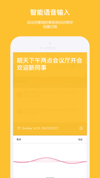Time do到点主要功能:日程管理(GTD中文),待办事项(Todo中文),日程管理提醒,日程管理规划,日程管理清单,待办行程安排,待办事项清单,时间管理规划,日程管理任务提醒,计划日程安排,待办任务提醒,等日程管理功能... · 日程管理待办事项分类:工作,学习,家庭,自定义,一目了然 · 简洁高效团队日程待办管理:团队内所有日程待办对团队内所有成员可见,可多人协同管理日程,针对日程项目展开讨论 · 快速添加日程待办事项:智能语音输入,创建日程待办,备忘录,语音记事 · 智能识别日程待办事项内容的“提醒时间”,自动识别语音输入的日程待办”日期“时间和联系人 · 全能日程待办任务提醒:为日程待办事项设置”时间提醒“和”地理围栏“提醒,并且协同人员可人工提醒 · 日程待办分类清晰:分为“笔记便签”和“日程待办提醒”简单明了 · 轻松记录待办事项便签:可以为待办事项便签添加文本,图片,录音,地理位置 · 协同任务管理:可以邀请工作伙伴,好友,同学,朋友一起参加日程事件,多人协同完成任务 · 与微信无缝对接:支持微信登录,可邀请微信好友参加你的任务,也可把任务发到朋友圈邀请好友,可关注微信公众号,语音或手动,创建清单日程待办或日程清单 官方网站:https://www.timedo.me 官方微博:https://t.cn/RLKuAjD 微 信:到点Time Do 客 服 QQ:2797353144 投诉建议:support@timedo.me